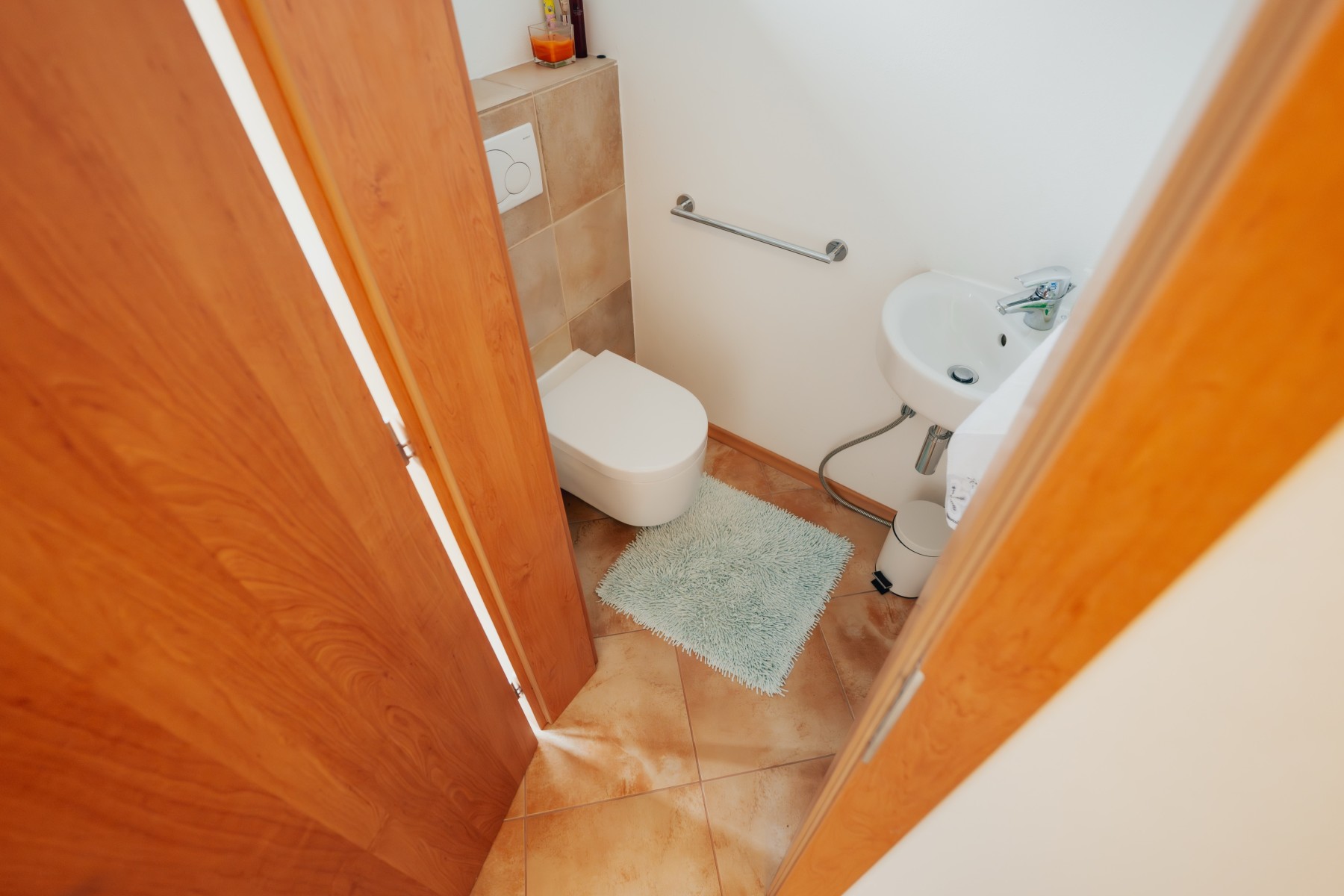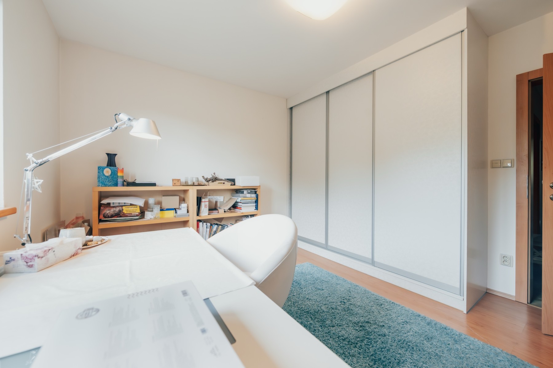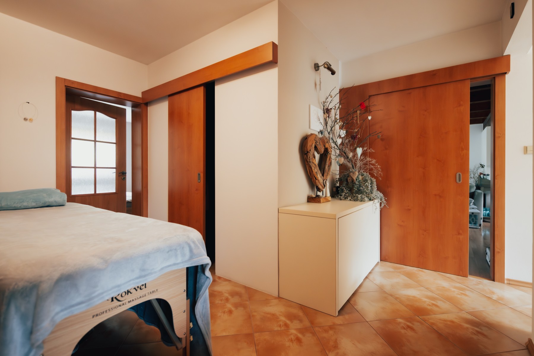 • plovoucí laminátové podlahy v kombinaci s keramickou dlažbou, v ložnici koberec