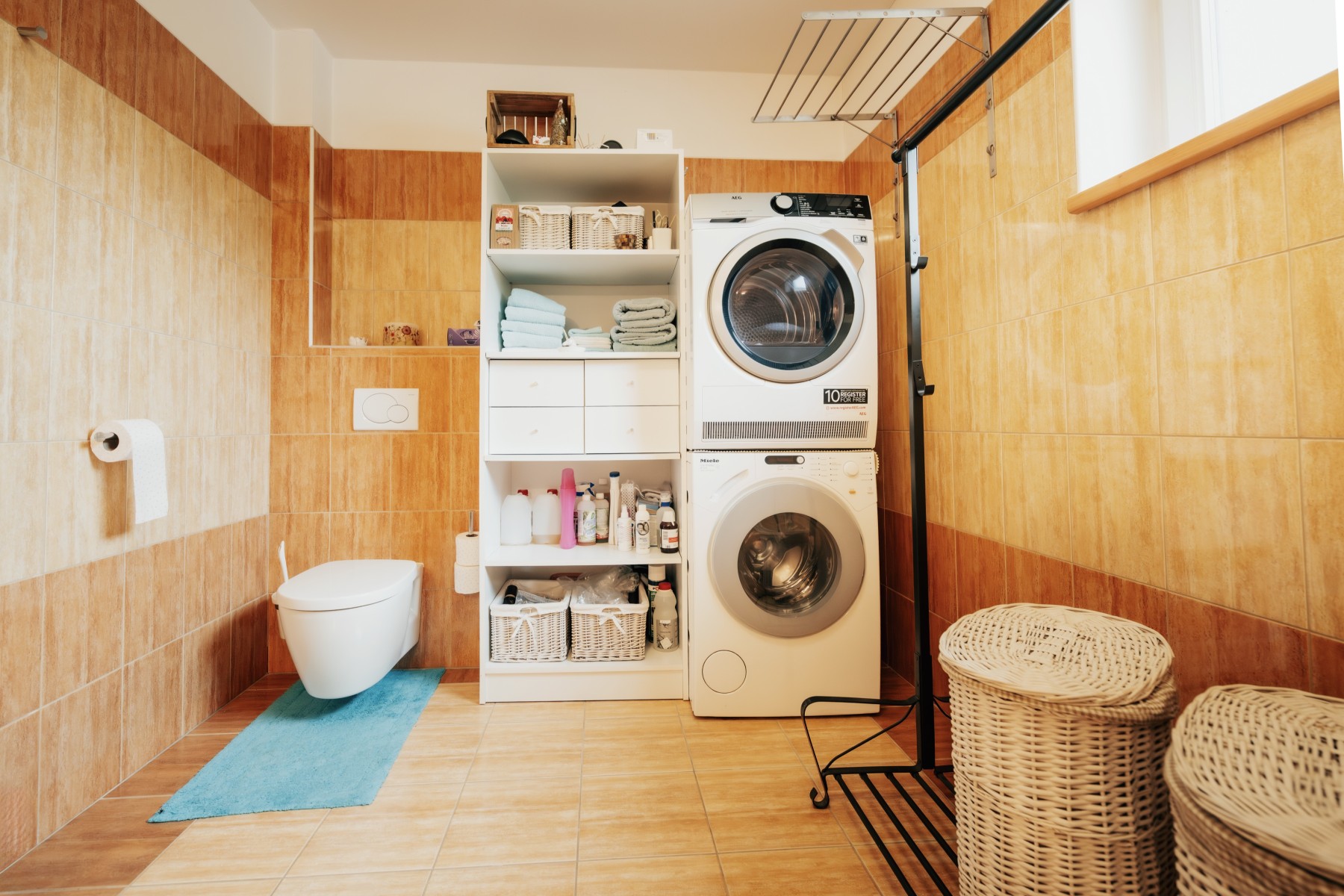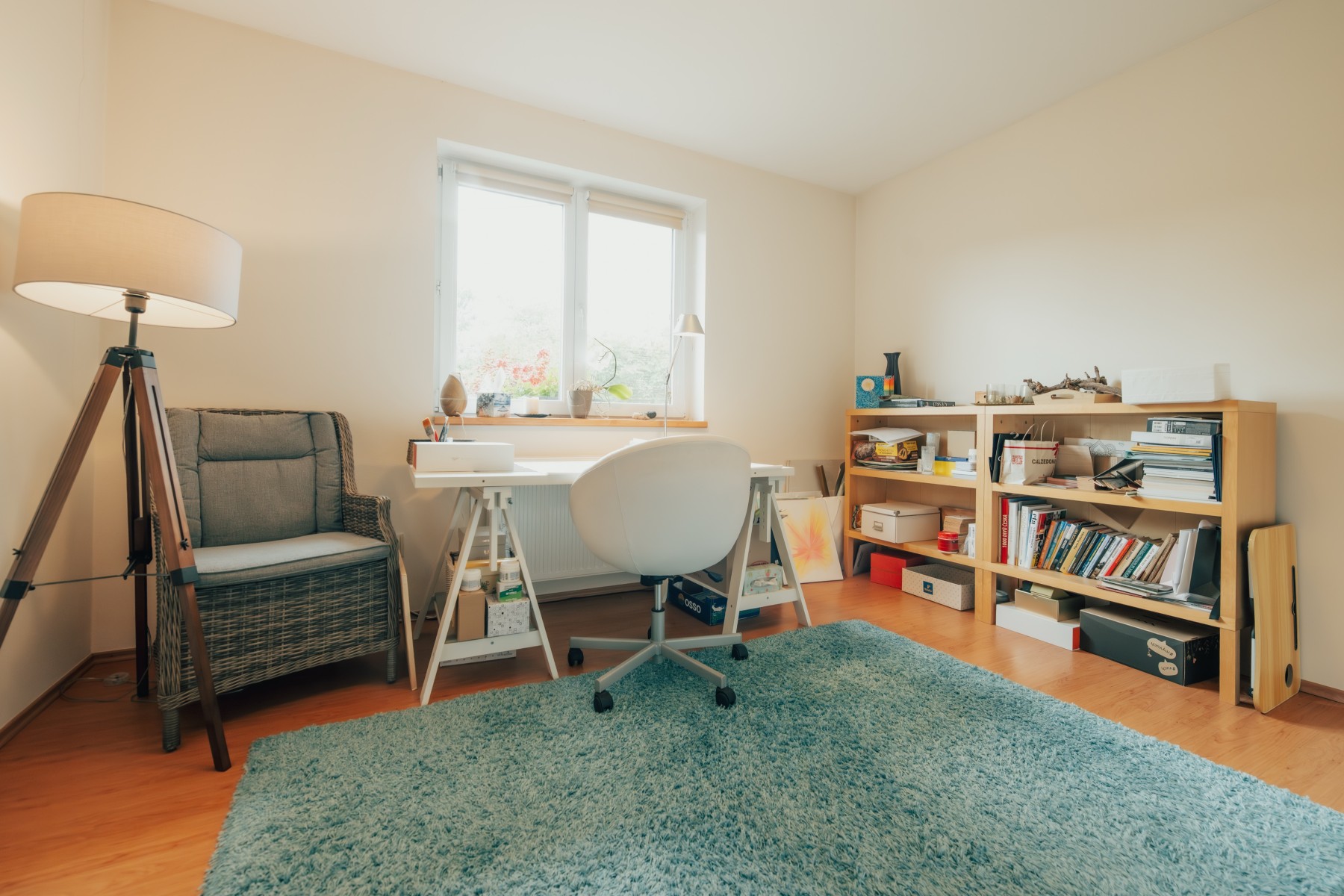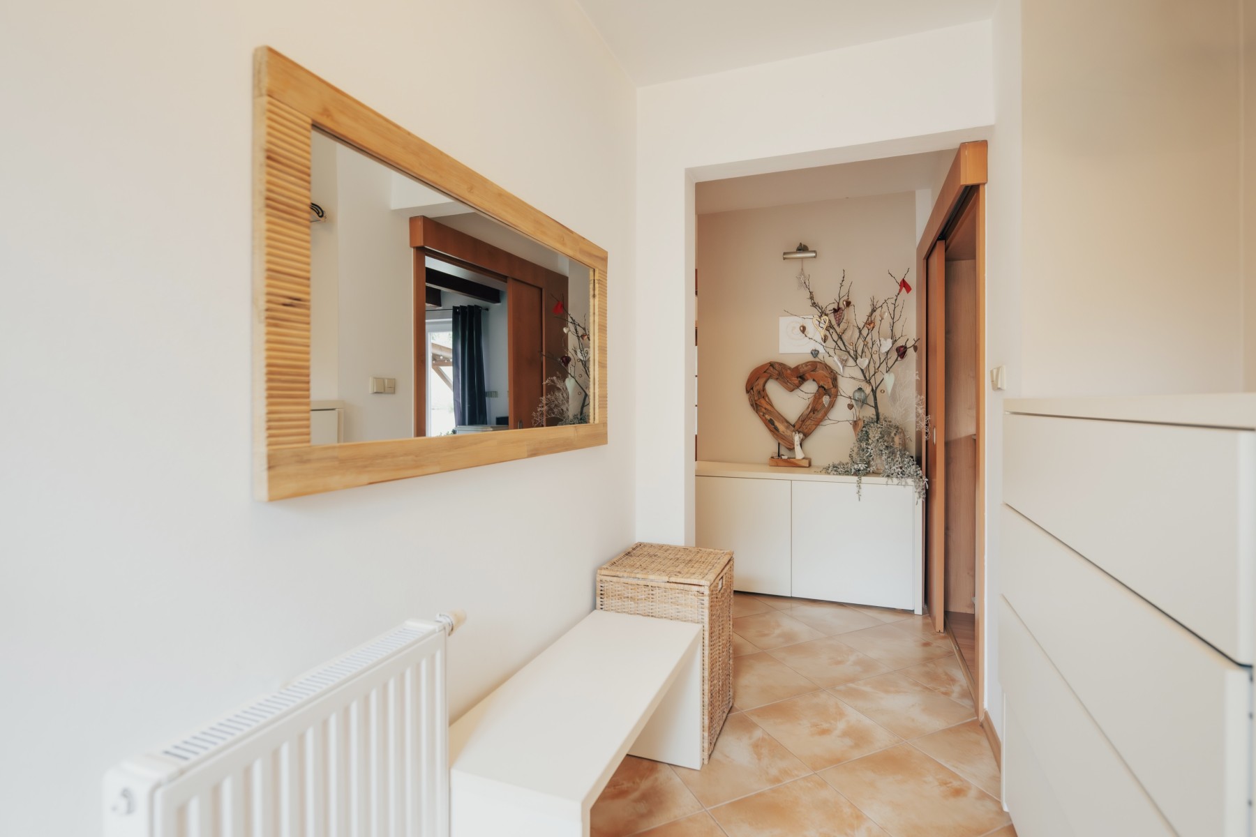 • plovoucí laminátové podlahy v kombinaci s keramickou dlažbou, v ložnici koberec